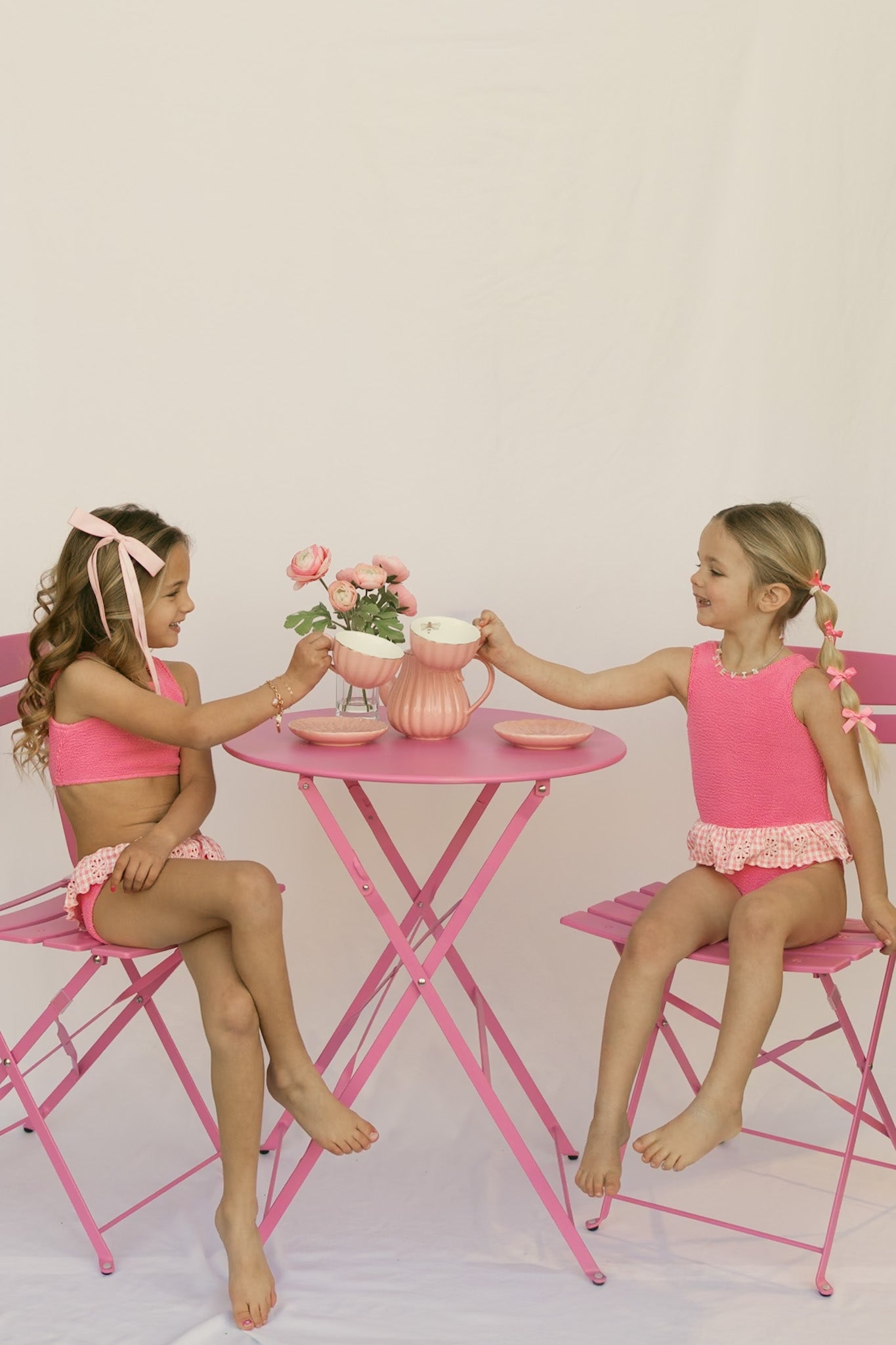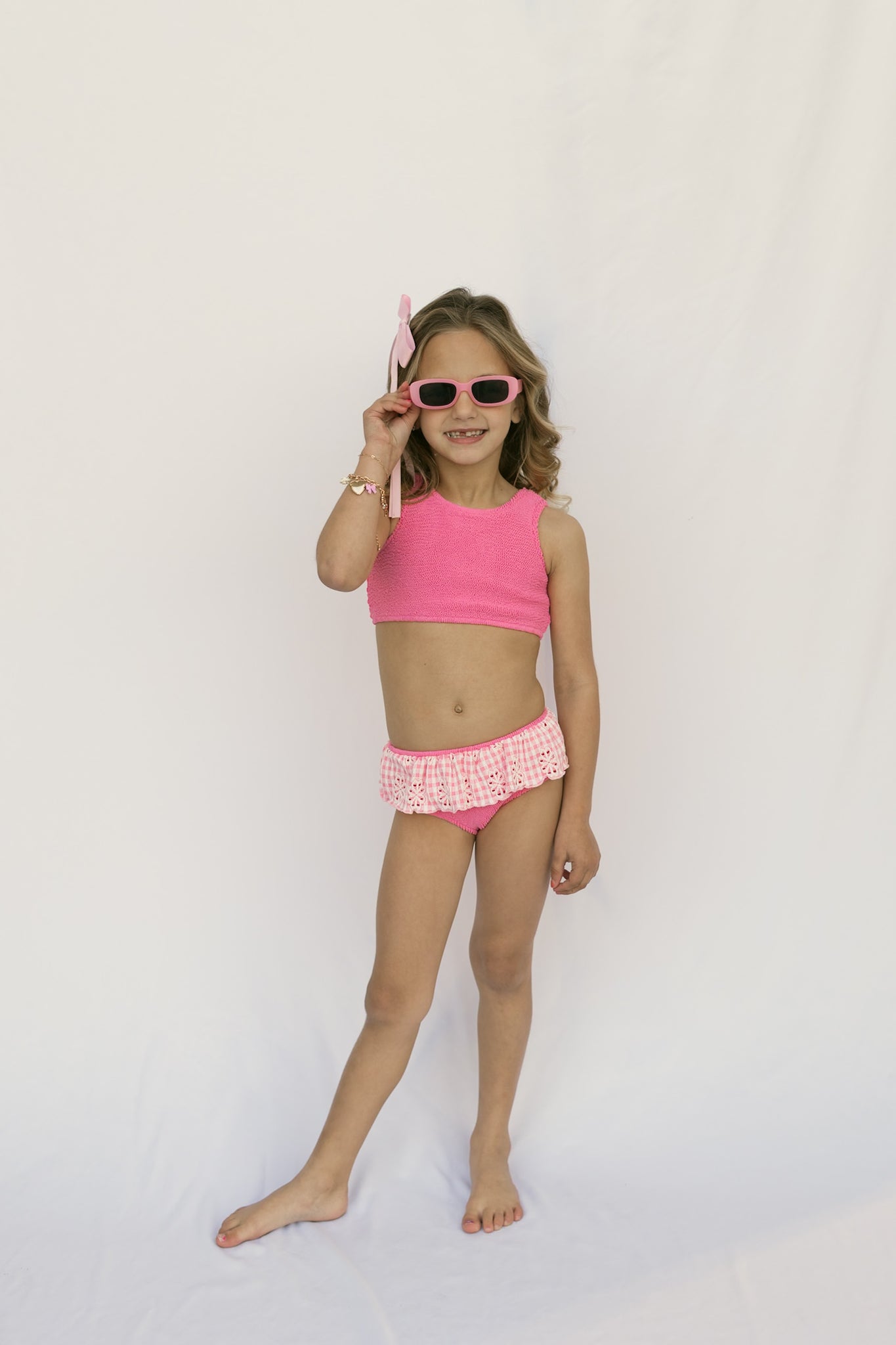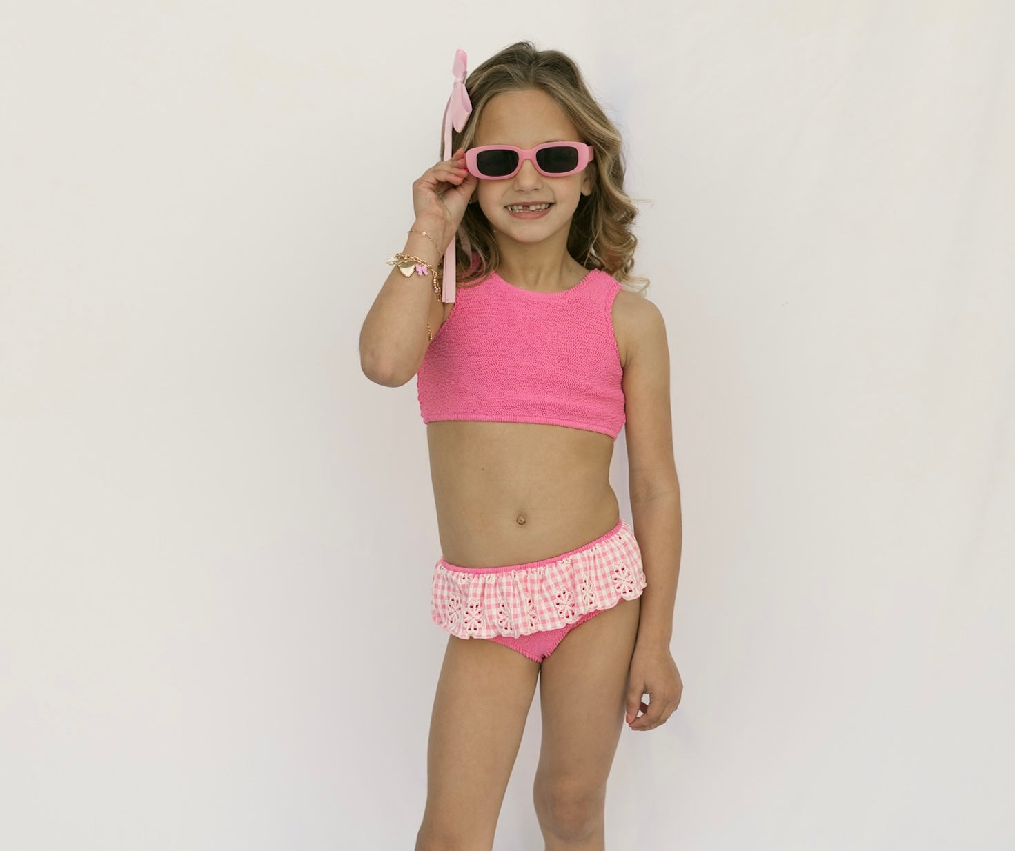 Say hello to Sunday — the two-piece made for kids who go full speed from sunrise to sunset. Designed for real movement and real fun, this set gives them the freedom to swim, cartwheel, dig, climb, and snack without a single outfit adjustment.